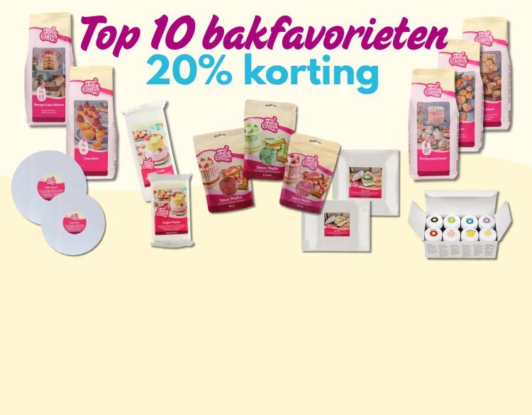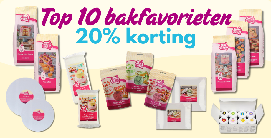 Bij Deleukstetaartenshop vind je alle bakproducten om zelf taarten, cupcakes, koekjes en meer te maken. Of jij nou een hobbybakker bent of regelmatig bakt op bestelling, voor iedere thuisbakker is er keuze genoeg! In onze online webshop vind je namelijk alles op het gebied van bakken: van bakingrediënten en taartdecoraties tot bakgereedschappen, decoreergereedschappen, presentatie items en verpakkingen. Daarnaast vind je op Deleukstetaartenshop.nl een grote dosis bakinspiratie op onze recepten pagina en blog pagina en staat er elke week een leuke aanbieding voor je klaar tussen onze aanbiedingen pagina.
