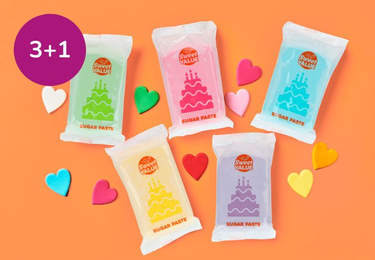 Wil je voordelig aan de slag met fondant? Met Sweet Value kies je voor betaalbare, no-nonsense producten die bakken eenvoudig en leuk maken! En van 23 januari t/m 29 januari profiteer je van onze Sweet Value introductiekorting: 3+1 gratis, waardoor je extra voordelig uit bent!