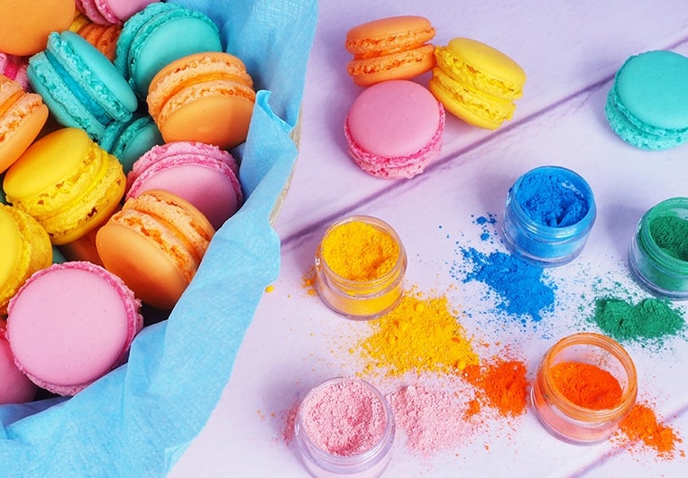 Als je poederkleurstof aan je beslag wilt toevoegen, begin je met het toevoegen van kleine beetjes poeder zodat je de kleur rustig kunt opbouwen. Let erop dat je niet te veel gebruikt, want poeder kleurstof is sterk geconcentreerd.